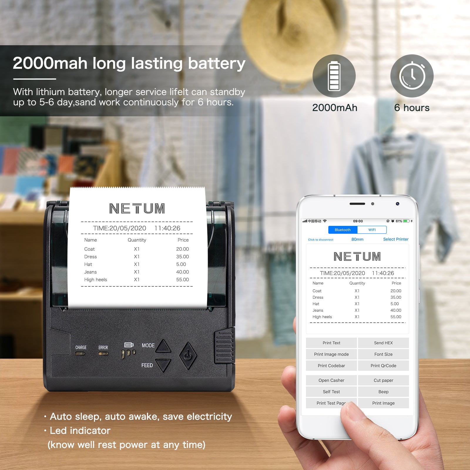 Product Name: 80mm Portable Bluetooth Thermal Receipt Printer