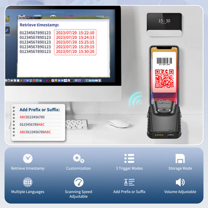 【1200mAh Rechargeable Battery】: This Bluetooth barcode scanner is equipped a 1200mAh rechargeable battery, it can be used for more than 8 hours continuous scanning after a full charge. You don't worry about the battery power, it can support your work all day. Developer Support Available, 1-Year Warranty - Barcode Scanner