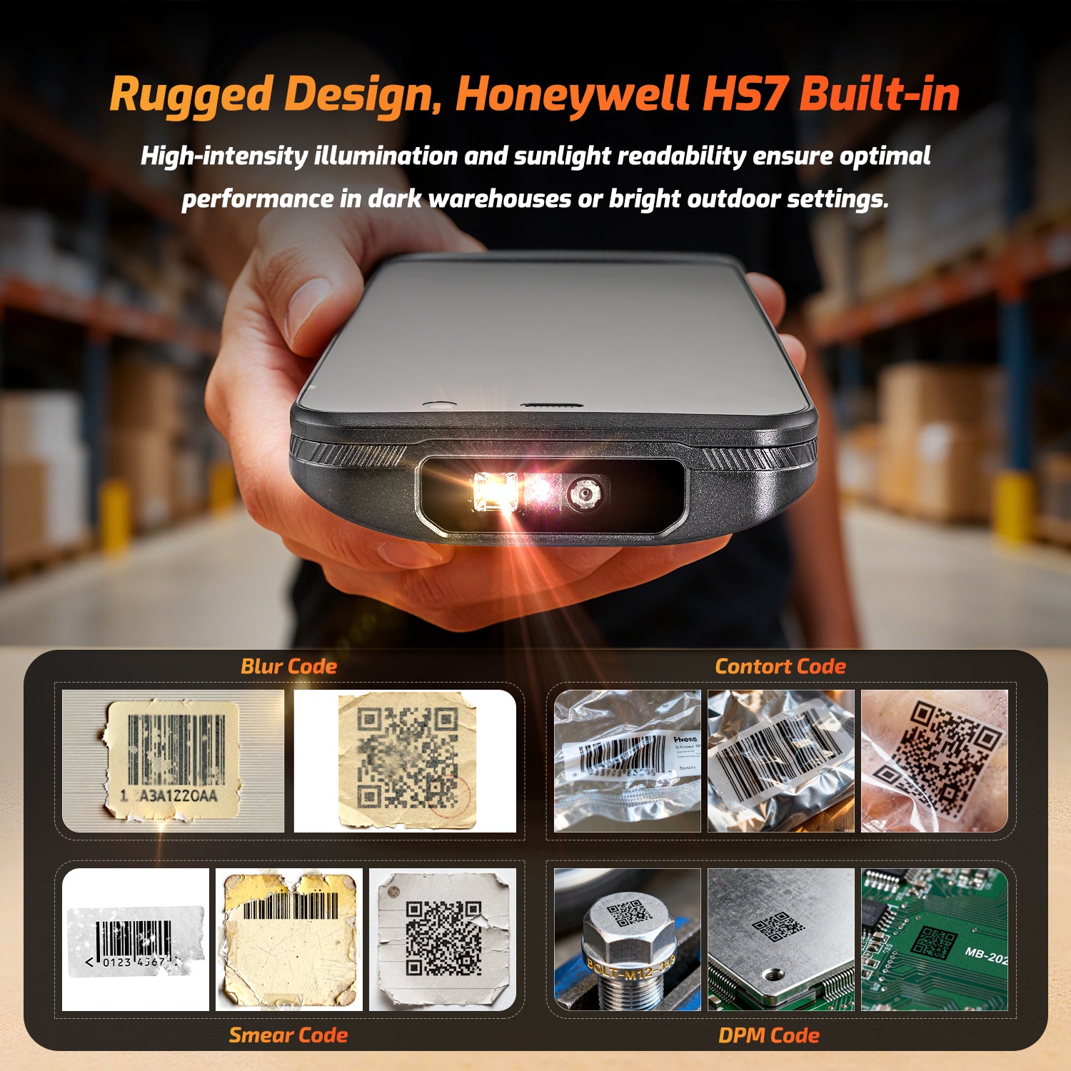 - Barcode Scanner: Built-in 1D/2D scanning module (Honeywell HS7)